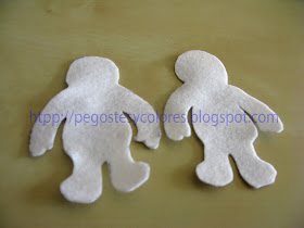 1.-Seguir el patrón del mono incluido en esta entrada, pasarlo a la tela blanca y recortar. Hacer dos iguales para cada cuerpo.